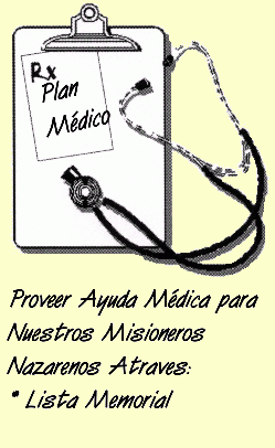 Proveer ayuda medica para nuestros Misioneros Nazarenos. |